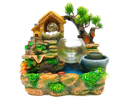 Description: 12″ X 8″ X 11″ HOUSE W/GLASS BOWL WATER FOUNTAIN