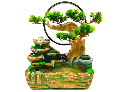 Description: 17″ X 10″ X 15″ BONSAI TREE W/RING LIGHT WATER FOUNTAIN