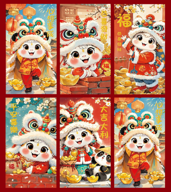 3.5″ X 6.75″ DANCING LION RED ENVELOPES LARGE CHINESE