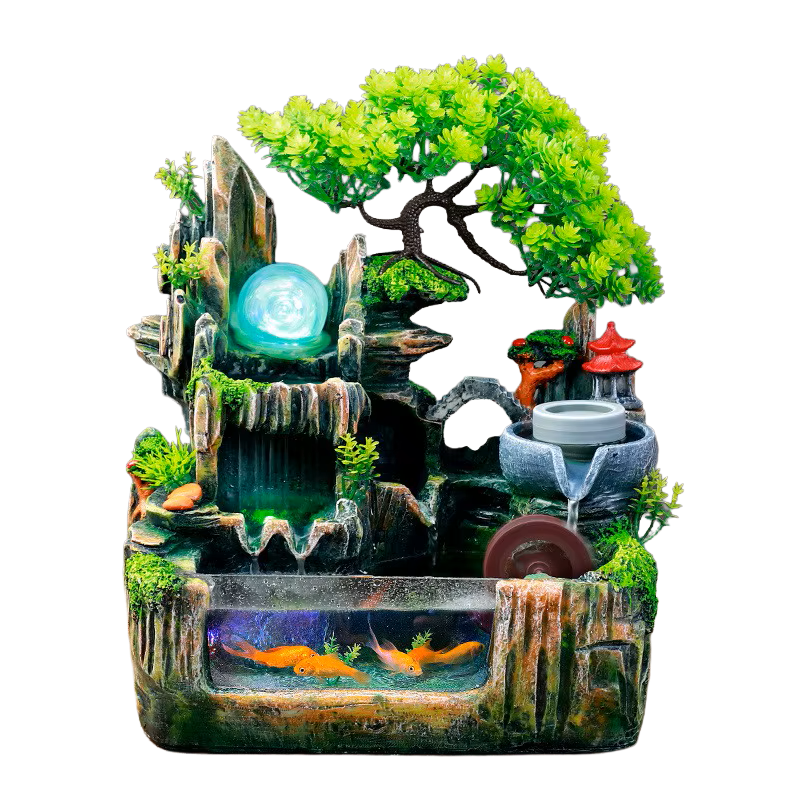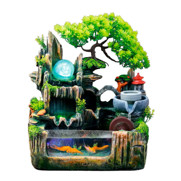 Description: 13″ X 11.8″ X 7″ FOUNTAIN W/ WATERFALL AND SEE THROUGH TANK