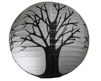 16″ PAPER LANTERN W/BLACK TREE BRANCH DESIGN