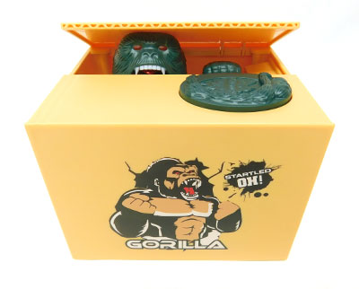 Description: 3.5″ X 4.75″ X 4″ GORILLA COIN STEALING SAVING BANK