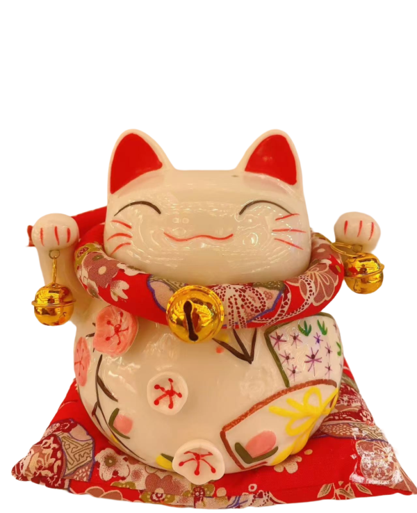 6″ PORCELAIN CAT BANK W/ FLORAL DESIGN 2 BELLS