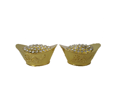 Description: 1.5″ X 3″ X 1.5″ 2PC GOLD YUAN BAOS W/DIAMONDS