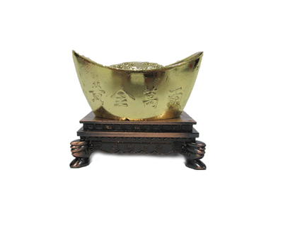 Description: 1.75″ X 1.5″ X 2″ GOLD YUAN BAO ON STAND