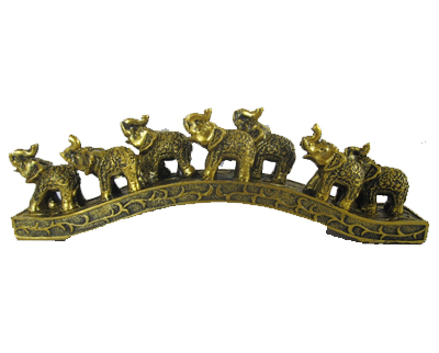 Description: 3.25″ X 10.25″ X 1.75″ 7 GOLD ELEPHANTS ON BRIDGE