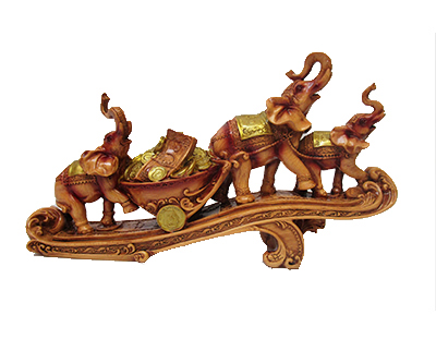 Description: 5.5″ X 9.25″ X 2.25″ 3 ELEPHANTS W/CHARIOT ON BRIDGE