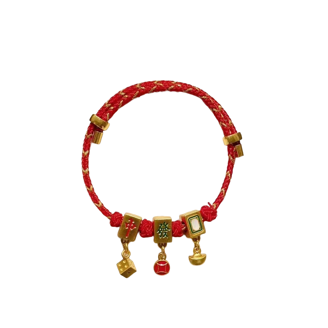 ADJUSTABLE RED STRING BRACELET W/ mahjong and Dice charm