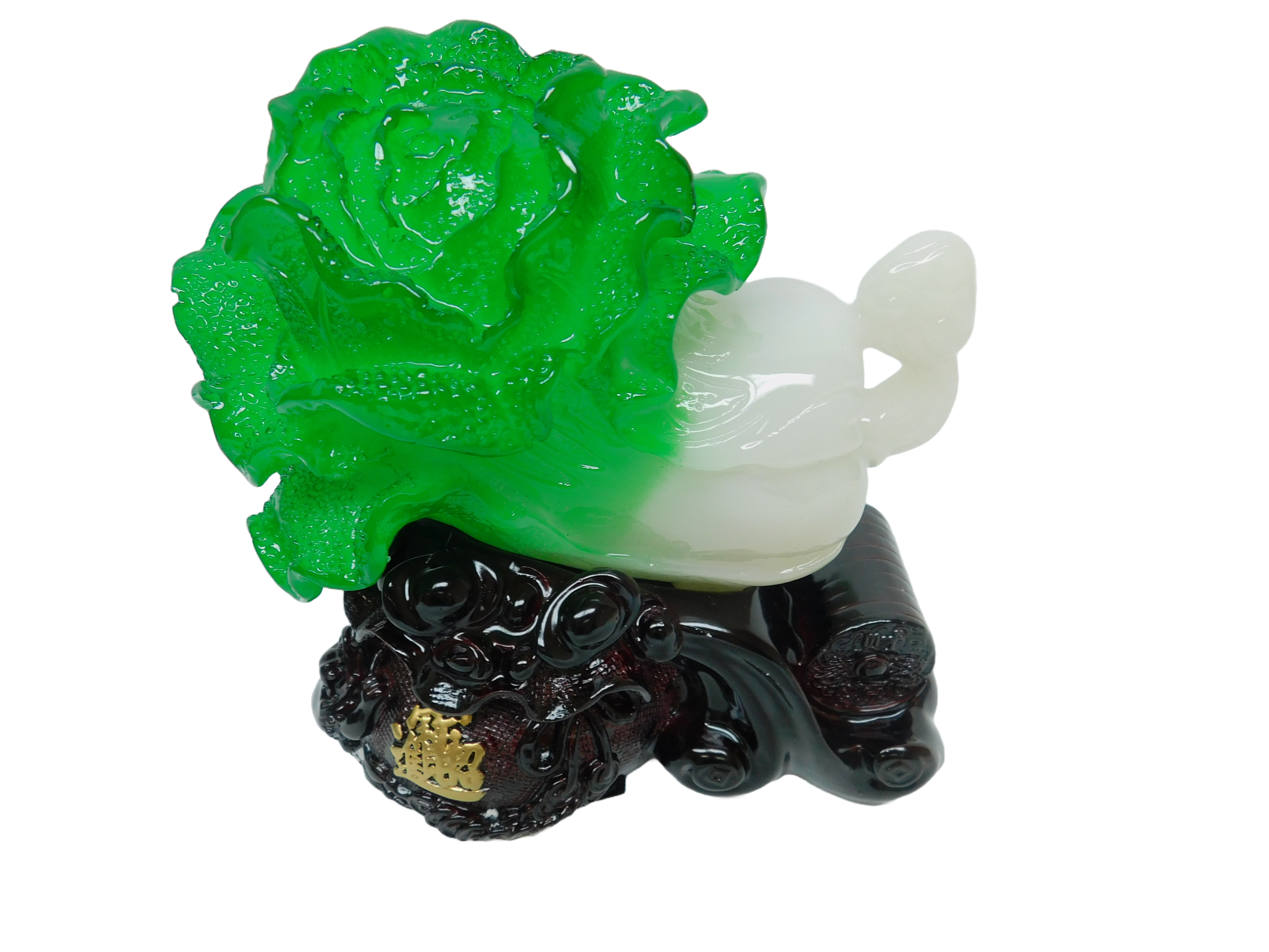 Description: 6″ x 5″ x 3″ CABBAGE W/ WOOD MONEY BAG BASE