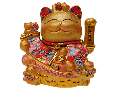 Description: 8.75″ X 9″ X 6″ GOLD CERAMIC WAVING CAT
