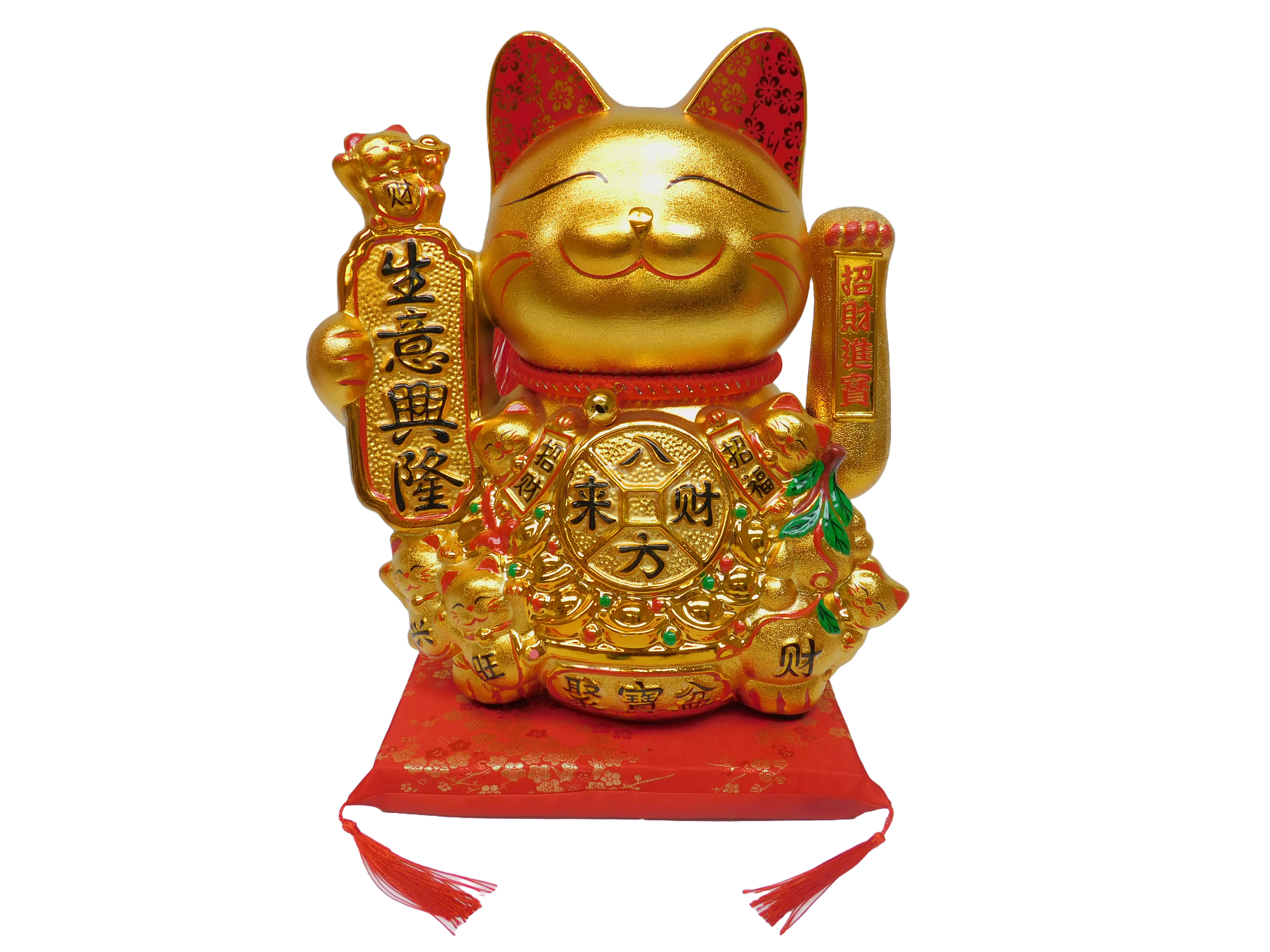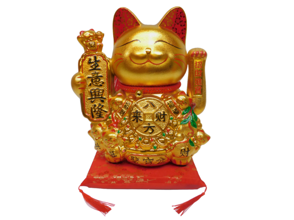 Description: 16″ x 13″ x 10″ GOLD LUCKY CAT W/ 5 CATS FORTUNE