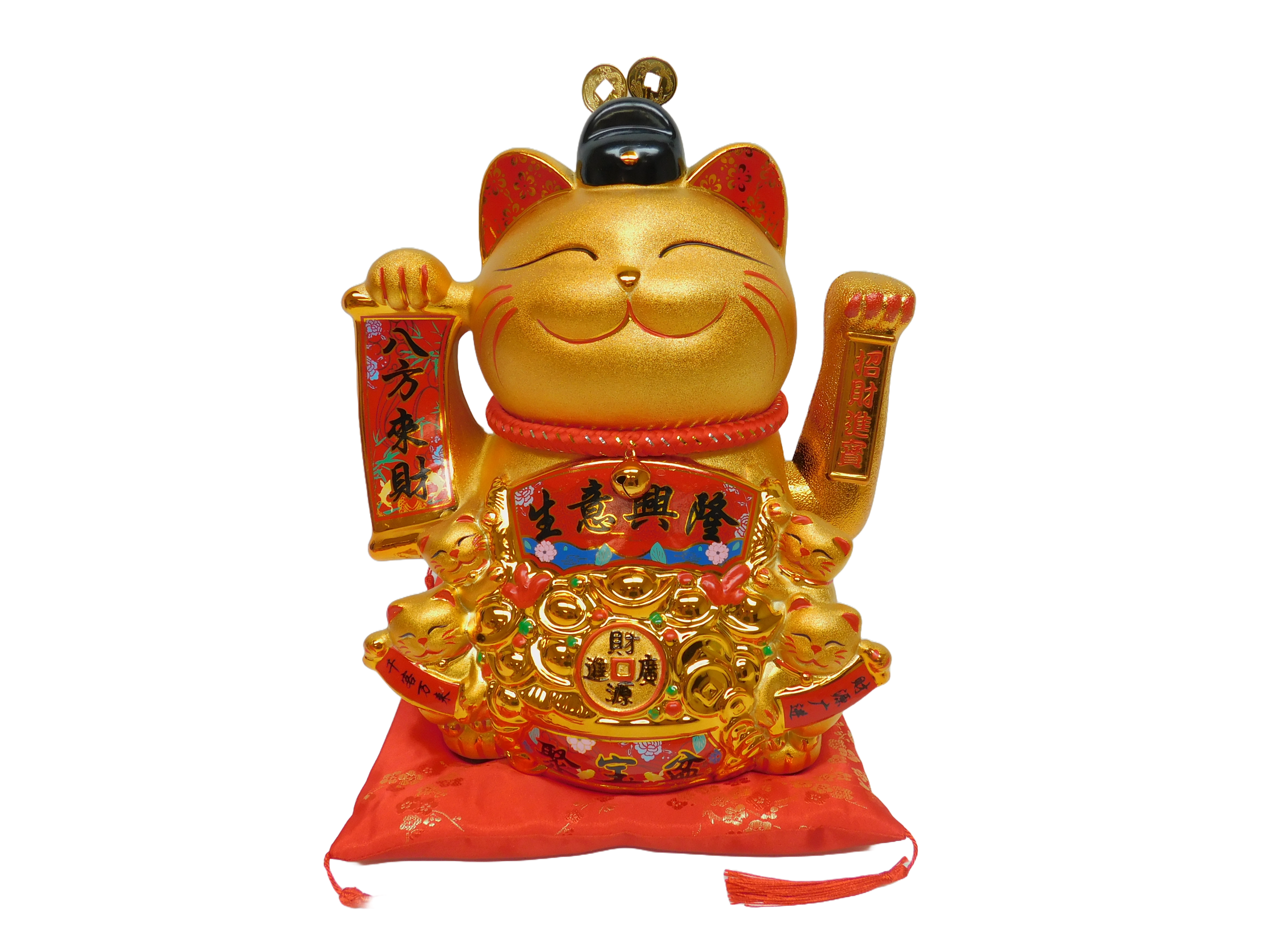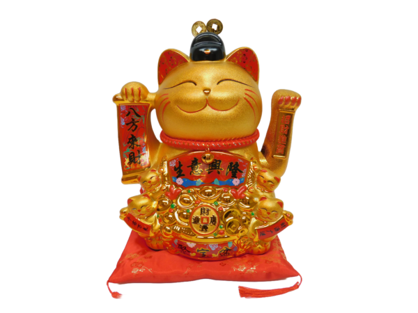 13″ x 10″ x 10″ GOLD CAT W/ 4 CATS AND TREASURE POT