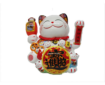 Description: 12″ X 12″ X 9″ WHITE CERAMIC WAVING LUCKY CAT