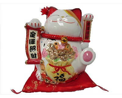 8.5″ X 9.25″ X 7″ WHITE CERAMIC WAVING CAT