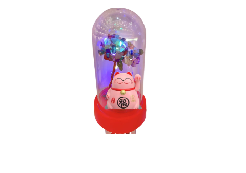 Description: PINK LUCKY CAT DOME W/ LIGHT UP TREE