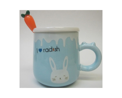 CERAMIC BLUE RABBIT CUP W/LID & SPOON