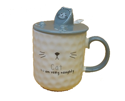 CERAMIC CAT CUP W/LID (LID DOUBLES AS A PHONE STAND)