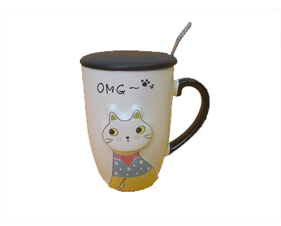 CERAMIC CAT CUP W/SPOON AND COVERBOGO (BUY ONE GET ONE)