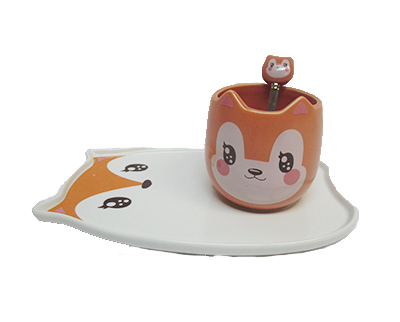 ORANGE FOX 3PC CERAMIC CUP W/PLATE & SPOON