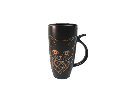 BLACK CERAMIC CAT CUP W/PLASTIC LID