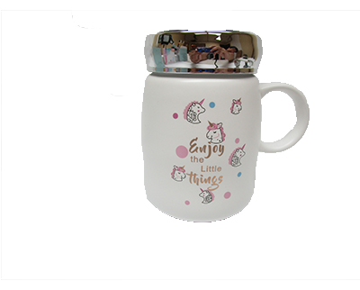 CERAMIC WHITE UNICORN CUP W/LID