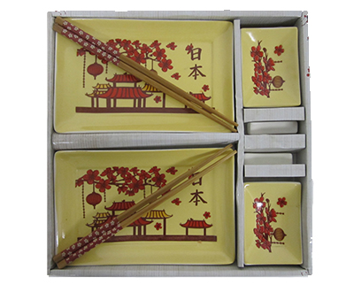 Description: PLATE, CHOPSTICK W/RESTERS IN YELLOW AND RED