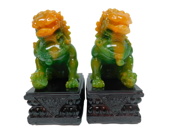 Description: 8″ x 9″ x 4″ GREEN/YELLOW FU DOG PAIR