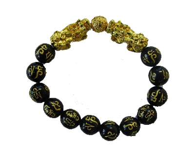 Description: 10MM GOLD PI YAO W/MANTRA BEADS