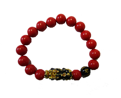 10MM CINNABAR W/BLACK PI YAO BRACELET