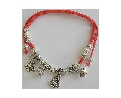 Description: DOUBLE BUDDHA W/BELLS RED ADJUSTABLE STRING BRACELET