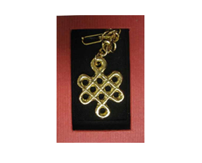 Description: GOLD MYSTIC KNOT KEY CHAIN IN RED BOX