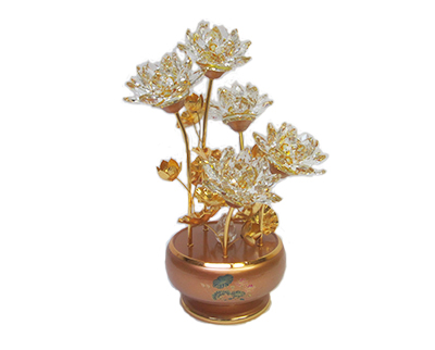 15″ X 10″ X 10″ 5 YELLOW CRYSTAL LOTUS WORSHIP LAMP
