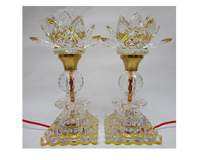 Description: 10″ X 5″ X 5″ YELLOW CRYSTAL LOTUS LAMP PAIR