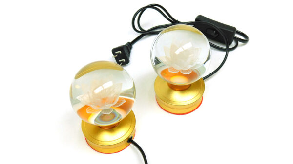 4.5″ X 3″ X 3″ CRYSTAL BALL W/LOTUS ETCHING WORSHIP LAMP PAIR