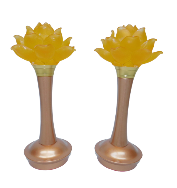 Description: YELLOW LOTUS WORSHIP LAMP PAIR 11″