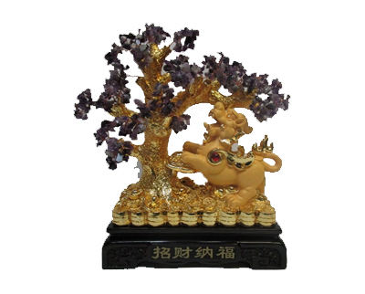 16.5″ X 12.75″ X 6.5″ GOLD PI YAO W/ AMETHYST TREE
