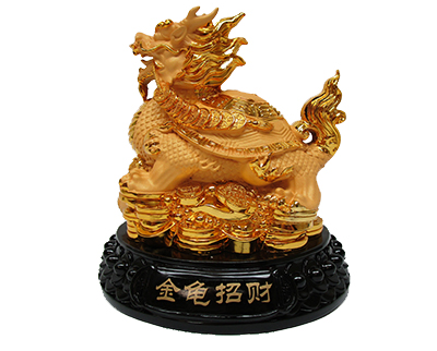 Description: 9.25″ X 8.75″ X 7.75″ GOLD DRAGON/TURTLE ON COINS