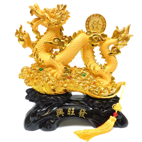 Description: 17″ X 7″ X 15″ GOLD DRAGON W/COIN