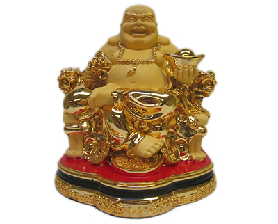 Description: 12″ X 10.75″ X 11″ GOLD SITTING BUDDHA ON DRAGON CHAIR