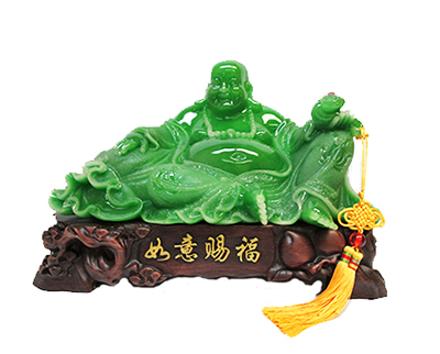 Description: 11? X 17? X 10.25? GREEN LAYING BUDDHA W/ BASE