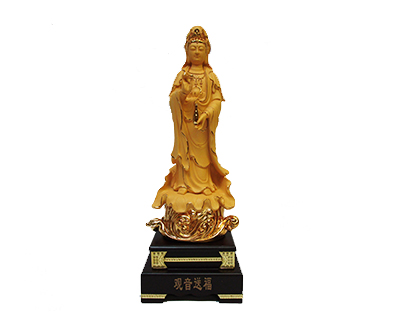 Description: 29″ X 10.5″ X 8.75″ GOLD STANDING KWAN YIN HOLDING VASE