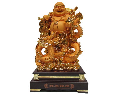Description: 14″ X 9″ X 7.5″ GOLD BUDDHA W/DRAGON