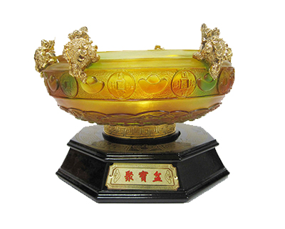 Description: 6.75″ IMITATED LIULI SPINNING TREASURE BOWL W/MONEY TOADS