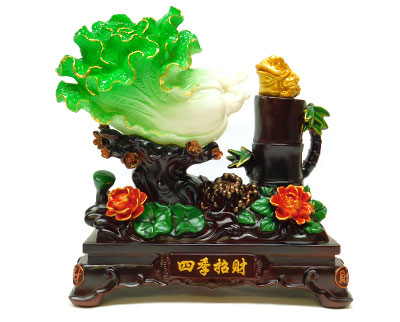 Description: 14.5″ X 5.5″ X 14″ CABBAGE W/MONEY TOAD & LOTUS FLOWERS