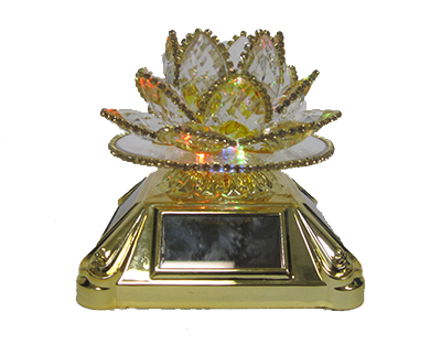Description: 3.5″X3.5″X3.5″ SPINNING YELLOW LOTUS SOLAR ORNAMENT