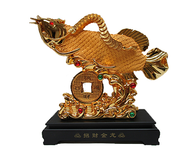 Description: 19.75″ X 17.5″ X 6.25″ GOLD FISH ON WAVE W/COIN