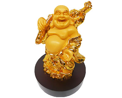 Description: 11.75″ X 9″ X 9″ GOLD BUDDHA HOLDING STICK & HULU