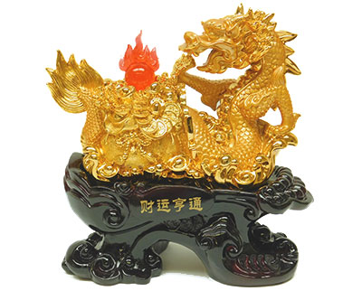 Description: 12″ X 12″ X 5.5″ GOLD DRAGON W/MONEY BAG