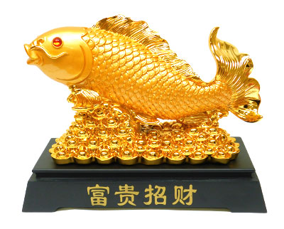 Description: 15″ x 7.5″ x 20″ GOLD FISH ON YUAN BAOS