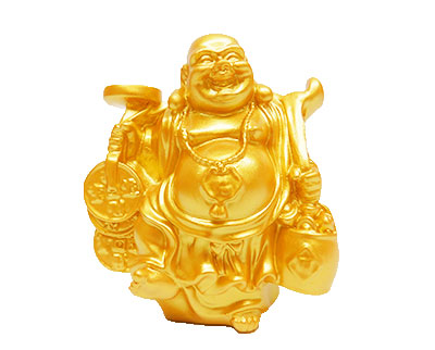 Description: 3.25″ X 2″ X 3.25″ GOLD BUDDHA W/TREASURE POT & COINS